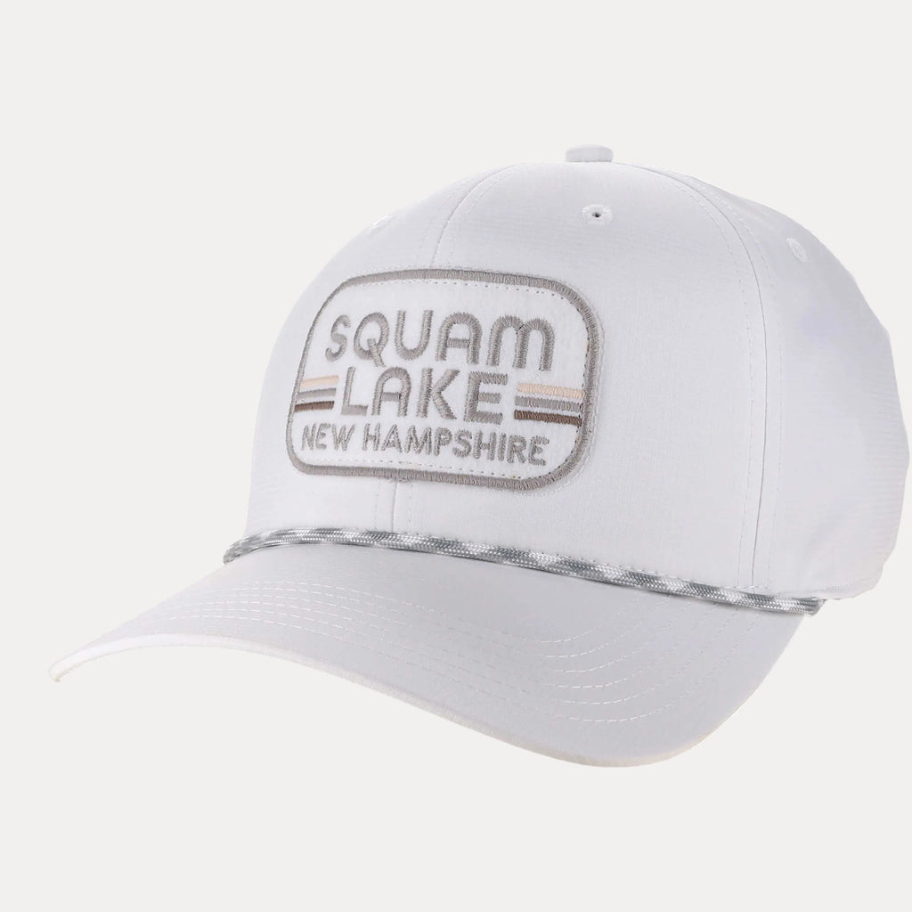 Finished with a curved visor, soft snapback closure, and signature rope detail across the brim, this style balances technical feel with classic lake style. Available in 5 colorways, each paired with a standout patch that brings a modern edge to a Squam staple.