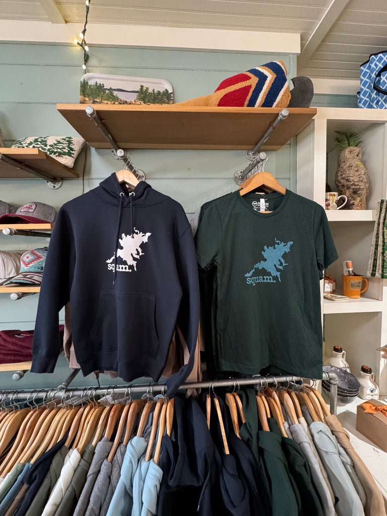 Squam Lake Outline Fleece Hoodie – a must-have for all Squam lovers seeking warmth, style, and a touch of nostalgia. Our go-to Unisex Sponge Fleece Pullover Hoodie features the iconic Squam Lake outline, proudly printed in Holderness, NH, using water-based ink for a design that stands out in both quality and environmental consciousness.